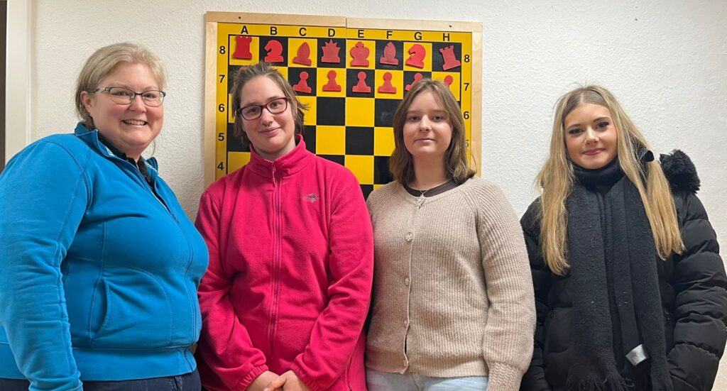 Ich bin also “pünktlich” um 16:30 wieder vor Ort – und drei Partien sind bereits beendet. Katrin am 1. Brett remis, Vanessa am 2. Brett gewonnen, Michelle am 4. Brett verloren. Alana hat im Endspiel einen Läufer mehr. Technisch klar gewonnen. Alanas Gegnerin spielt noch weiter (bei diesem Zwischenstand muss sie testen, ob Alana die Technik auch beherrscht), aber Alana bringt den Punkt sauber nach Hause.
