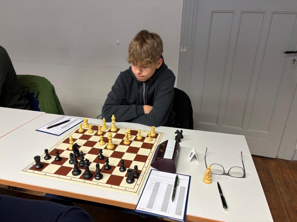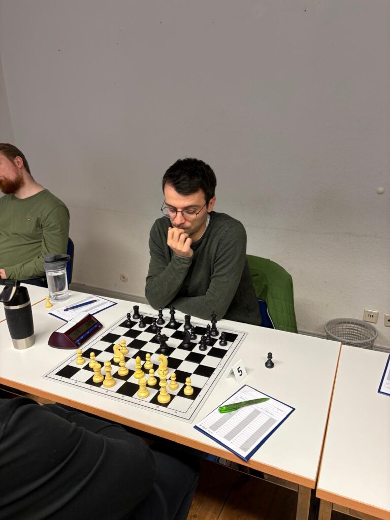 An Brett 6 spielte Philipp Schäfer gegen einen deutlich favorisierten Gegner. Der erste kurze Schreckmoment kam nach Zug 14: